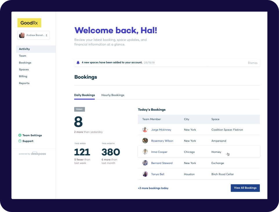 for individual teams or an entire company by providing every employee managed access to the most complete network of coworking options.